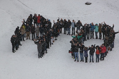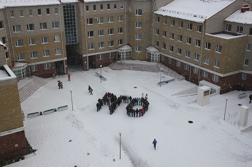 Более 100 студентов выстроились в форме букв «Р Г О» во внутреннем дворе вуза и прокричим слова: «География объединяет».