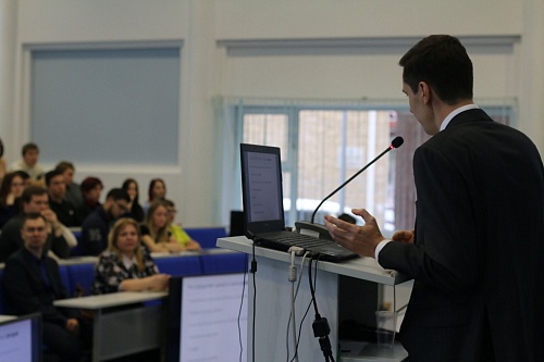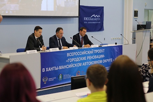 Перед студентами выступили представители Департамента жилищно-коммунального комплекса и энергетики Ханты-Мансийского автономного округа. Заместитель директора компании «Северные строительные технологии» Сергей Муштаев поделился опытом благоустройства придомовой территории на примере жилого комплекса «Клюква». C коллегами из Нижневартовского университета общение проходило по skype.