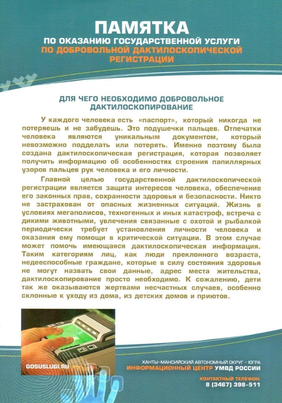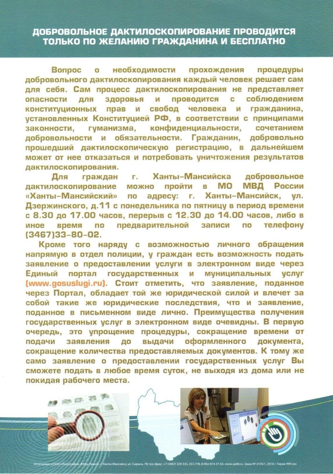Специалисты УМВД России по Югре призвали молодежь пройти добровольное дактилоскопирование.