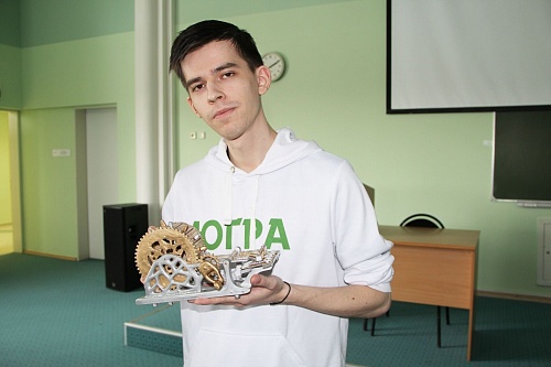 2 место разделили двое – Цурик Григорий и Волков Дмитрий (Советский Политехнический колледж, 4 курс), представившие Обучающий музыкальный механизм.