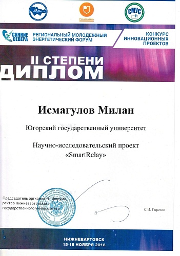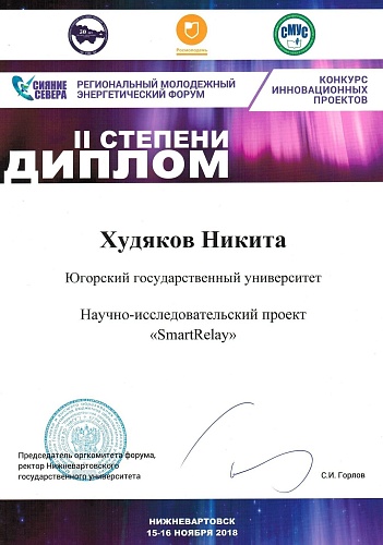 Команда Югорского государственного университета, в составе: Артем Лисимов, Сергей Буш, Максим Заборов, Никита Худяков, Милан Исмагулов, – заняла 2 место в номинации «Энергосбережение в сфере ЖКХ».