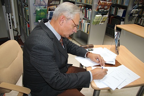 Вадим Борисович оставил в дар библиотеке экземпляр своей книги, в скором времени все желающие смогут подержать в руках историко-философскую поэму «Иртыш непокорный».
