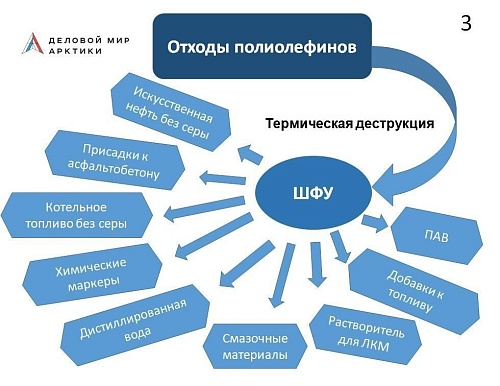 По словам автора проекта, процесс активного промышленного освоения арктических и прочих северных территорий сопровождается накоплением отходов, которые, для минимизации ущерба окружающей среде, следует вывозить на «большую землю» или направлять на удовлетворение местных потребностей. При этом значительную часть промышленных отходов составляют полимеры, из которых основная масса – это полиолефины: полиэтилен и полипропилен. Сюда относятся: упаковочный материал грузов, полимерные мешки «биг-беги», ящики, канистры и емкости, укрывной материал, изоляция электрических проводов, обрезки полимерных труб, изоляционная пленка трубопроводов и детали автотранспорта.