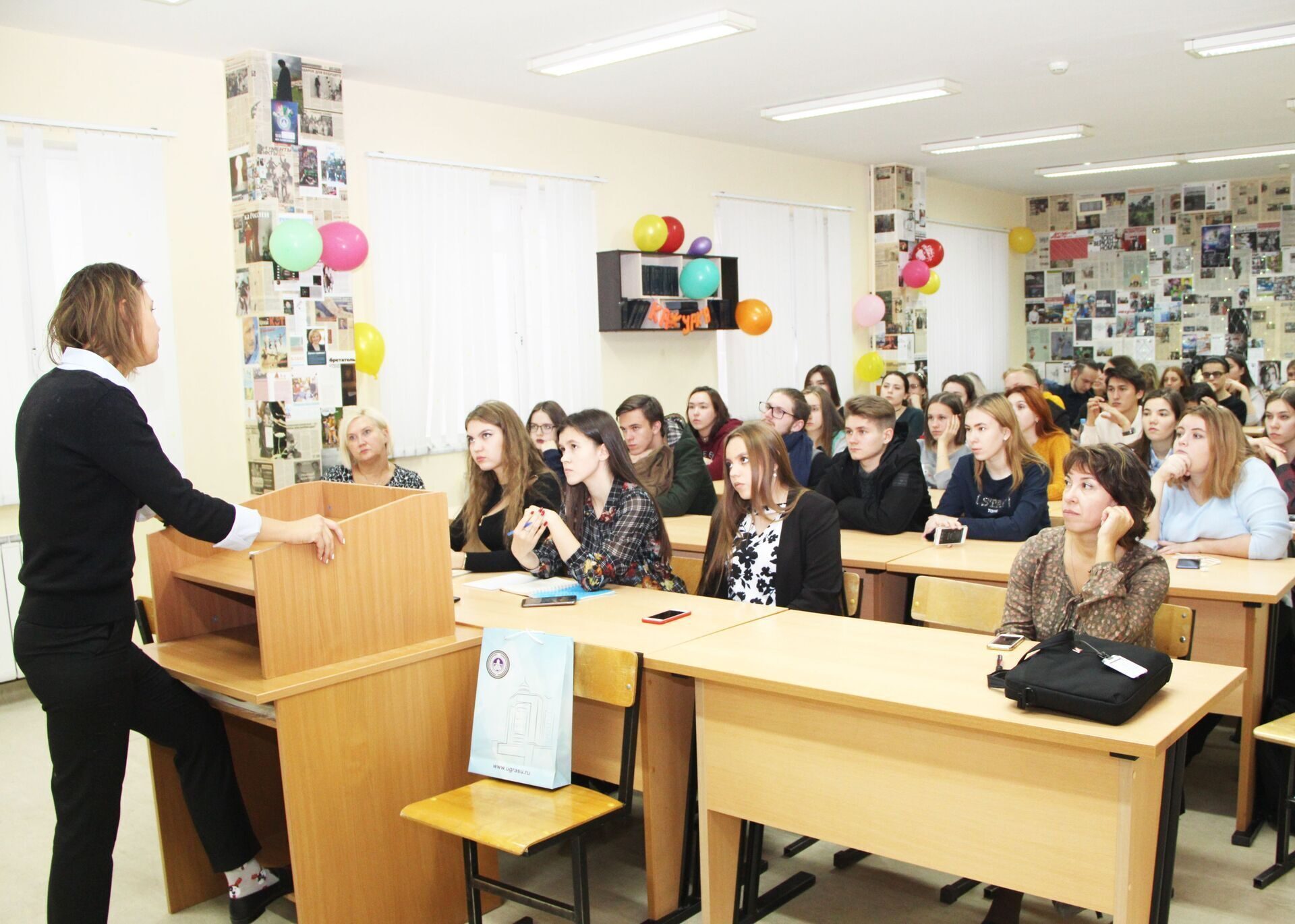 Спикер рассказала студентам о специфике работы журналистов федеральных СМИ, в частности о киножурналистике, рассказала о том, как она писала выпускную квалификационную работу в Уральском федеральном университете (тогда еще УрГУ), создавала авторскую передачу и о том, какими профессиональными качествами должен обладать журналист.