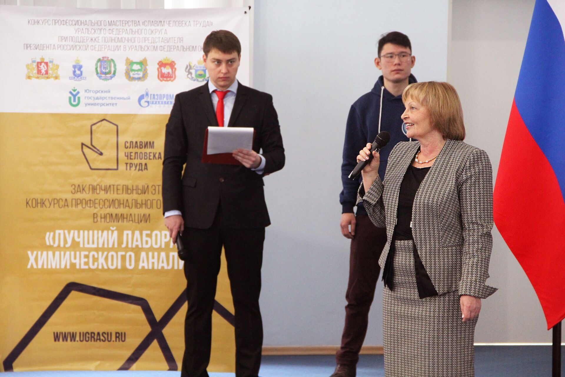 Состоялась торжественная церемония открытия федерального (заключительного) этапа конкурса профессионального мастерства «Славим человека труда!» Уральского федерального округа по номинации «Лучший лаборант химического анализа». Одновременно в двух городах Югры – Ханты-Мансийске и Югорске, связанных между собой телемостом, организаторы, почетные гости и члены жюри приветствовали участников конкурса.