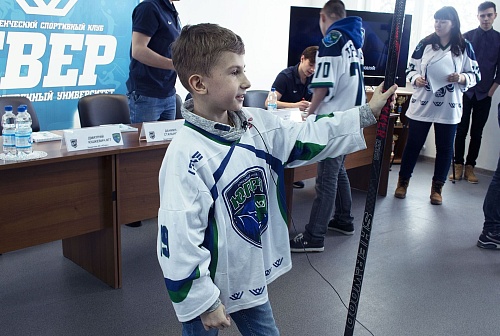 За лучший вопрос хоккеисты «Югры» приготовили приз – клюшку. Она досталась самому юному участнику встречи – Антону Алтухову. Мальчик пришёл на встречу с мамой, которая попросила спортсменов дать наставления подрастающему поколению.