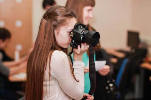 После зажигательного флешмоба директор библиотеки Ирина Кузнецова со словами «Камера, мотор, читаем!» захлопывает кинохлопушку, открывая фестиваль чтения «Библионочь-2016» в Научной библиотеке ЮГУ.