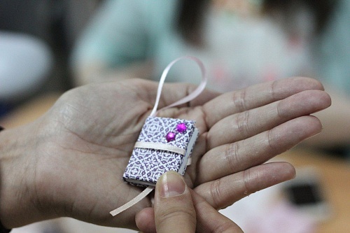 С площадки «HM-book» все выходили с довольными лицами и брелоками-книгами. Здесь всем желающим помогали создавать свои неповторимые сувениры. Зеленые, розовые, из ткани или бумаги, на любой вкус и цвет мини-книжечки теперь будут украшать ключи, или же просто красоваться дома у участников.