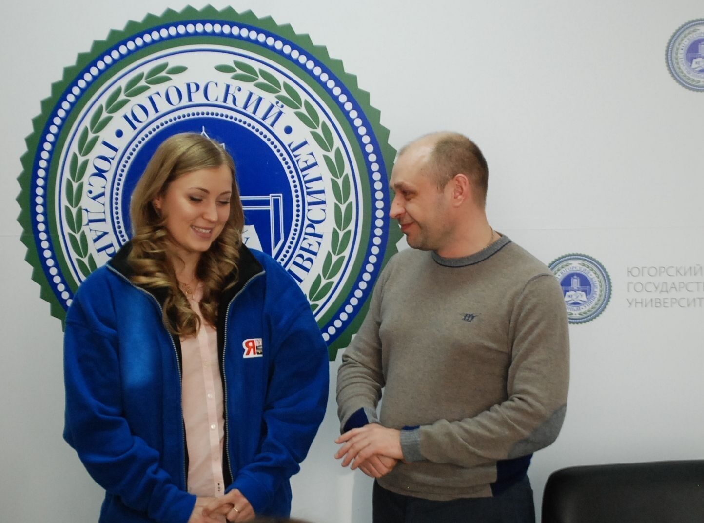 Проректор по учебной и воспитательной работе Владимир Мищенко поздравил спортсменку с получением высокого звания, отметил, что гордится такими студентами нашего вуза как Ольга, посоветовал всем ребятам брать с нее пример и подарил толстовку с надписью «Я люблю ЮГУ».