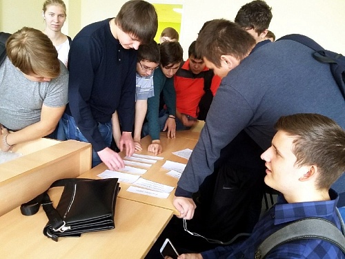 Ребята познакомились с преподавательским составом института, узнали даты основания университета, института и кафедр. Фамилии преподавателей были «зашиты» в кроссворды. А названия мероприятий – в шифрограммы. При помощи математических действий участники квеста вычисляли даты событий из жизни вуза. Ребята блеснули знаниями дат основания ЮГУ, Политехнического института и Инженерного факультета.