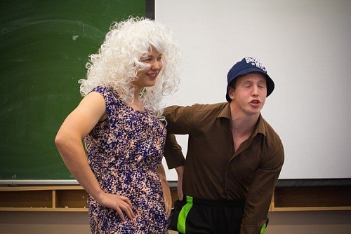– Мы подготовились за очень малый период времени,– говорит студент первого курса направления «Программная инженерия» Алексей Цепенок. – Мой одногруппник Николай Бобылев придумал презентацию студента, как техники Apple. Как только он выдвинул эту идею, то появился еще один очень талантливый парень Эрнест Сафиуллин, который написал сценарий. Выступало 7 человек. В роль было очень легко войти. Это было зрелищное и юмористическое представление.