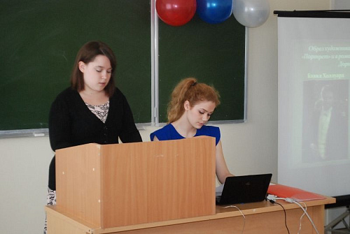 Александра выступила с докладом «Роль имени в жизни человека», а Ирина с докладом «Тема нравственной ответственности поэта в творчестве А. Ахматовой».