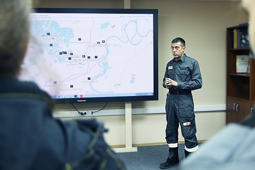 Начальник производственно-диспетчерской службы Александр Григорьев рассказал студентам о модели интеллектуального месторождения с высоким уровнем автоматизации, возможностью моделирования процессов и оперативного мониторинга и устранения неполадок, которую первыми в стране ввели в использование на территории Самотлора. С помощью данной системы АО «Самотлорнефтегаз» удалось сохранить за прошедший год около 300 млн кВт электроэнергии.