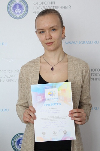 Югорский университете на «Ломоносов – 2015» представляли: Доровикова Екатерина, 5 курс «Химия», Маденова Мадина, 5 курс «Химия», Серая Ксения, 5 курс «Химия», Нехорошева Дарья, 2 курс «Химия», Чиркова Анастасия, 4 курс «Химия», Кудреватых Александра, 4 курс «Химия», Сологубова Ирина, 4 курс «Химия», Коциловская Галина, 4 курс «Химия».