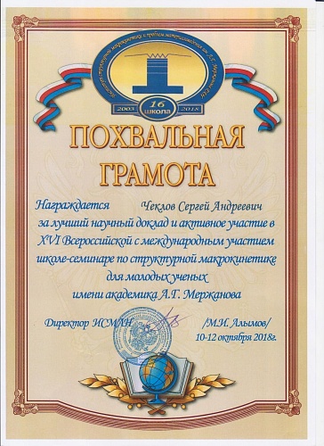 В результате, два доклада студентов нашего университета были признаны лучшими на XVI Всероссийской с международным участием Школе-семинаре по структурной макрокинетике для молодых ученых имени академика А.Г. Мержанова.
