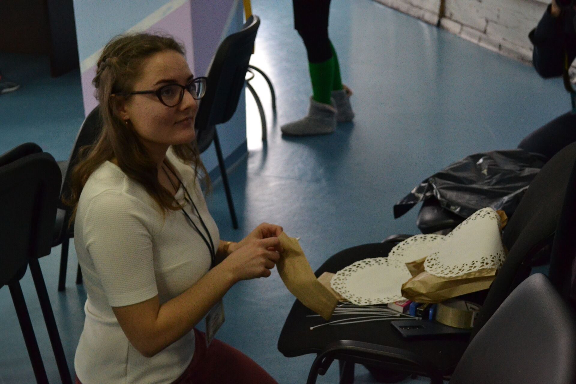 – На визитке мой гаджет был планшет. А чтобы поближе познакомиться, я сыграла с жюри в игру «ОК». Рассказывала факты о себе, а они угадывали – правда это или нет. В завершении успешного прохождения игры подарила всем членам жюри на счастье Оки. Ольга Короткова теперь всегда с ними, – говорит студентка. – На импровизации мне достались бумажные пакеты и салфетка, жгутики и степлер. Так как близится Новый год, то идея пришла сама собой – светильник с вырезанными элементами.