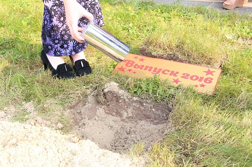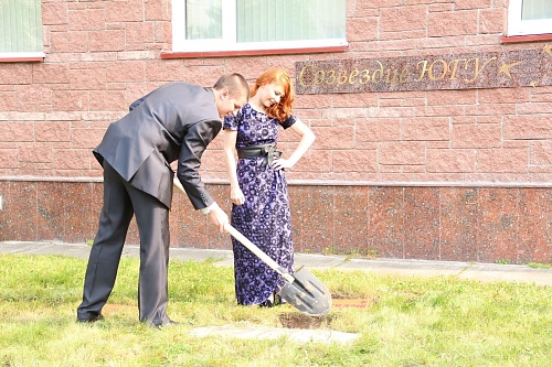 Завершилось мероприятие традиционной фото-сессией и погружением в землю капсулы времени с видеозаписью, подготовленной выпускниками будущим поколениям. Капсулу заложили: выпускница Гуманитарного института, филолог Елена Захарова и выпускник Института систем управления и информационных технологий, инженер-программист Александр Якимчук.