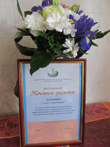 Почетной грамотой за многолетний добросовестный труд и большой вклад в развитие рационального природопользования, обеспечение экологической безопасности и охраны окружающей среды была награждена Елена Дмитриевна Лапшина, доктор биологических наук, директор НОЦ «Динамика окружающей среды и глобальные изменения климата» Югорского государственного университета.