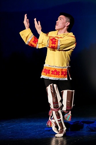 – В родильных обрядах финно-угорских народов есть как похожие обычаи, так и уникальные для каждого. Есть обычай, что лицо матери должно быть прикрыто платком, таким образом, сохраняется сокральность, – рассказывает Анастасия. – Чтобы оградить мать от злых духов, никто не должен видеть момент появления ребенка на свет. В своем выступлении мы с моим напарником Иваном Гындыбиным и постарались это отобразить.