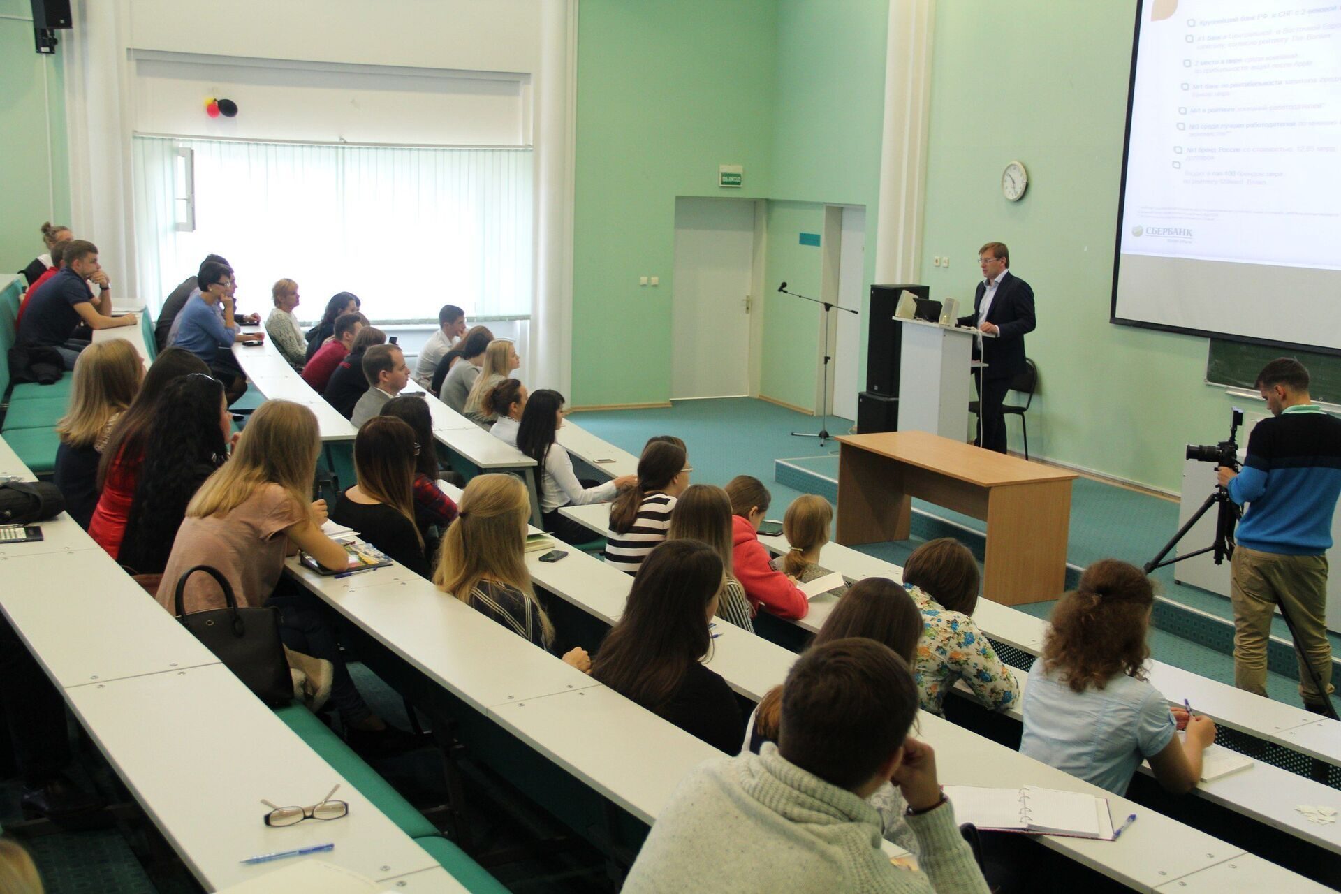 На первой лекции ребята узнали о преимуществах работы в банке и о требованиях, предъявляемых к сотрудникам. Особое внимание заведующий кафедрой уделил миссии и ценностям Сбербанка.