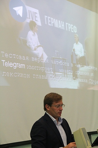 12 сентября управляющий Ханты-Мансийским отделением Сбербанка, заведующий кафедрой базовой кафедрой «ПАО Сбербанк» Александр Солоп прочел первую лекцию для студентов Института менеджмента и экономики.