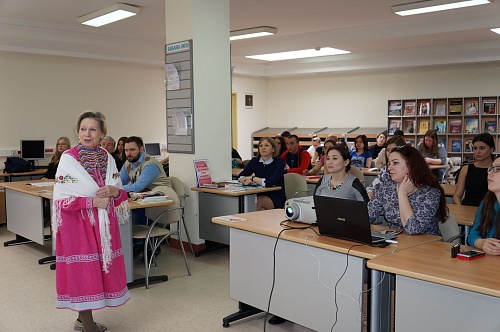 Кандидат филологических наук, заслуженный деятель науки, доцент кафедры филологии Гуманитарного института ЮГУ Дина Герасимова рассказала о своей научной деятельности и представила студентам свои работы, среди которых учебные пособия, монографии, научные статьи в сборниках конференций и научных журналах.