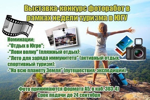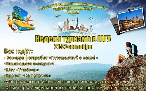 Не пропустите! С 21 по 25 сентября Вы можете стать участником ежегодного события «Неделя туризма», посвященного Всемирному дню туризма, которое пройдет в Югорском государственном университете.