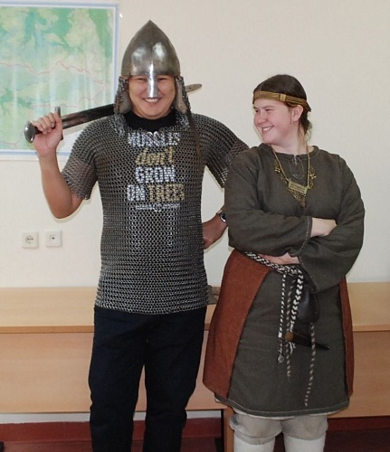 Студентам Политехнического института Любови Чумак и Сергею Клипак разрешили даже сразиться на мечах, объяснив технику боя.