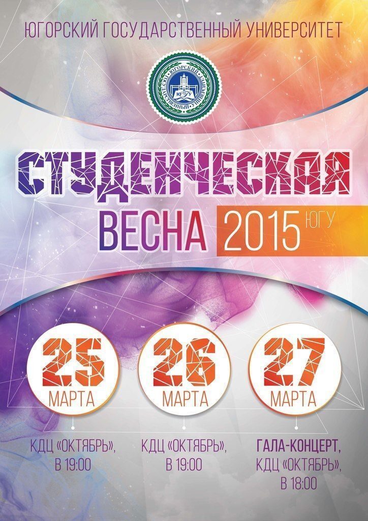 Ждем всех желающих на открытии «Студенческой весны ЮГУ-2015», которое состоится 25 марта в 19:00 в КДЦ «Октябрь». Приходите поддержать свой институт!