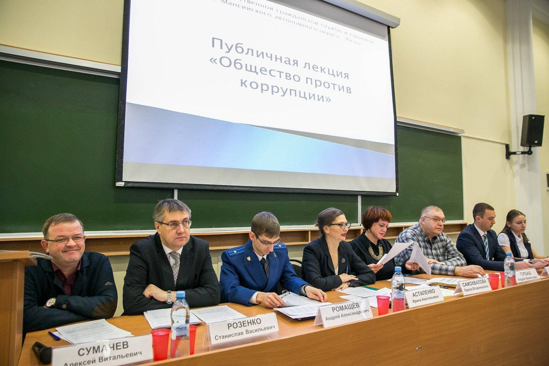 Спикерами выступили: директор Департамента государственной гражданской службы и кадровой политики автономного округа Ирина Астапенко, заместитель начальника отдела по надзору за исполнением законодательства о противодействии коррупции Прокуратуры Югры Андрей Ромащев, председатель Регионального отделения по Ханты-Мансийскому автономному округу – Югре Общероссийской общественной организации «Центр противодействия коррупции» Андрей Гордаш, директор Юридического института Станислав Розенко, профессор кафедры уголовного права и уголовного процесса Алексей Сумачев.