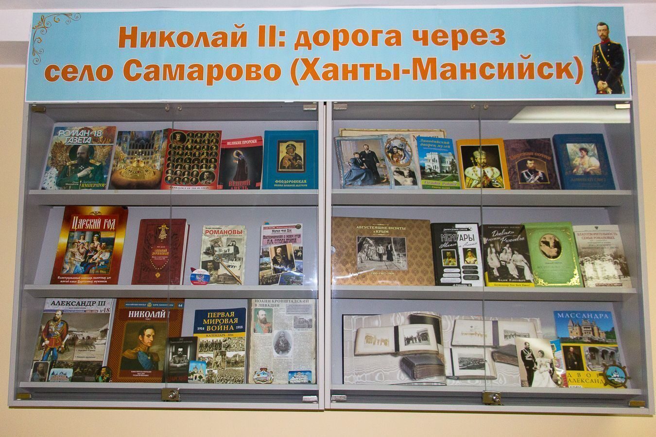 Выставку подготовила авторская историографическая группа из Храма Покрова Пресвятой Богородицы под руководством Неониллы Хортюк. Организаторы торжественно перерезали красную ленточку и вкратце рассказали студентам о поездке царя в Сибирь. На выставке представлены различные книги с редкими историческими фактами о поездке Николая II в Самарово и о династии Романовых в целом. А также: модели кораблей, чертежи царских фрегатов, катеров и яхт, марки, монеты, ассигнации, фотографии, фарфоровые куклы в различных платьях и национальных костюмах, посуда с гербом России. На открытие выставки была привезена икона «Святые царственные страстотерпцы» ручной работы Элеоноры Чижовой.