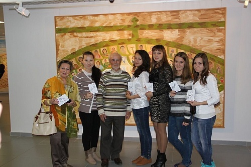 Мастер лично провел экскурсию для представителей молодого поколения Югры, рассказал о произведениях представленных в экспозиции, посвященной к 50-летию своей творческой деятельности и ответил на вопросы студентов.