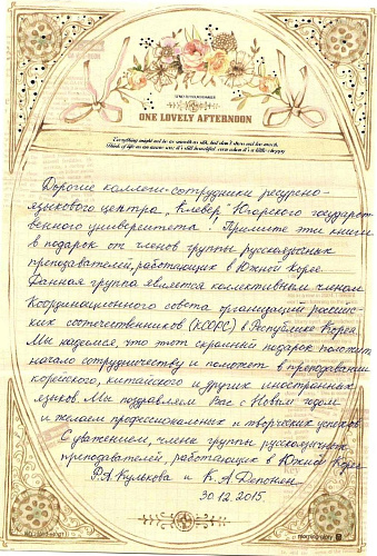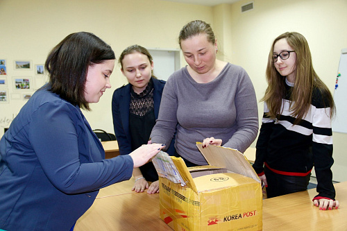 - Посылка была отправлена по инициативе Сувонского университета и группы русскоязычных преподавателей, работающих в Южной Корее. В посылке: учебники, словари, учебные пособия, газета, выпускаемая в Южной Корее на русском языке, - рассказывает директор «Clever» Алина Михайлова. - В 2015 году ЮГУ и Сувонский университет подписали соглашение о двустороннем сотрудничестве. Корейский язык в центре «Clever» преподает Закирова Елена Ниязовна, сейчас обучение проходят 2 группы и идет набор в группу для начинающих.
