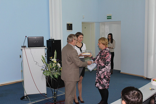 Переходящий кубок «За научные достижения в 2014 году» и сладкий приз вручили победителю конкурса Институту менеджмента и экономики
