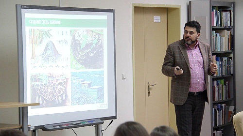 – Есть несколько видов общественных образовательных пространств – мегакампусы, кампусы, мини- и микро кампусы. Наш университет – это 5 000 студентов и по текущему классификатору здесь можно создать мини-кампус, – рассказал во время лекции заведующий кафедрой. – Поскольку мини-кампус – это место для коммуникаций, разработчики проекта предложили организовать открытые многоярусные площадки для общения и обучения, крытые площадки для общения и просмотра образовательного кино. Предусмотреть точки питания, пешеходные маршруты. Сделать ландшафтное озеленение и многоуровневое освещение.