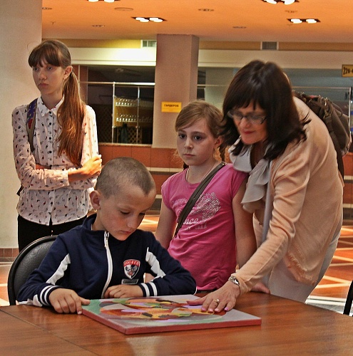 Партнеры акции из Германии, владельцы некоммерческой галереи Dreiklang в Ханн.Мюндене художница Нина Гелинг-Бушон и скульптор Эккахарт Бушон провели с лучистыми детьми сеанс по арттерапевтической методике «Вариабили». Суть этого сеанса в том, чтобы развить воображение и творческие идеи у лучистых детей. Юные художники акриловыми красками изобразили на небольших полотнах свой внутренний мир и состояние души.