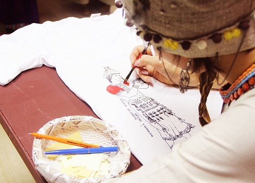 Конкурсантки приняли участие в интерактивной программе Центра народных художественных промыслов и ремесел «Пряха-Непряха» и мастер-классе «Роспись футболок «Югорская княжна».