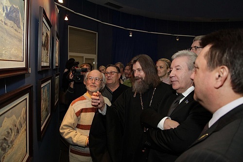 Диалог двух самобытных художников Федора Конюхова и Геннадия Райшева состоялся в Галереи-мастерской сибирского живописца. Геннадий Степанович познакомил коллегу со своими работами, провел экскурсию по творческой мастерской.