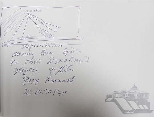 Покидая Государственный художественный музей, Федор Конюхов пожелал следующее: «Желаю Вам взойти на свой духовный Эверест!».