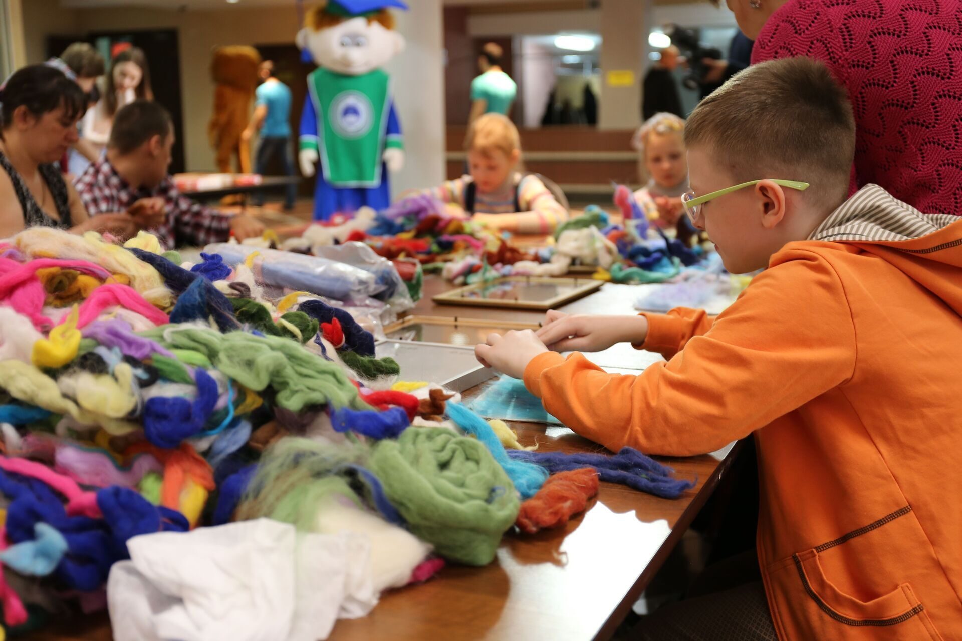24 воспитанника «Лучика» смогли прийти на праздник. Студенты в русских народных костюмах встречали гостей у входа, угощали морсом и лимонадом. Лев Алекс, русские красавицы и кукла Югуша танцевали и водили хороводы с лучистыми детьми, а мастер, участница популярного Этно-фестиваля, который ежегодно проходит в Тюмени, Юлия Серебренникова создавала с ребятами картины из шерсти. В основном дети изображали природу, в каждой картине присутствовало солнце, согревающее своими ласковыми лучами землю, цветы, реки и горы.