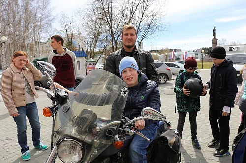 Музыкальная компания «Живой звук» специально для «лучиков» организовала фото-стоянку возле КДЦ «Октябрь». Здесь «позировали» два байка, два гоночных автомобиля и их экстравагантные хозяева.