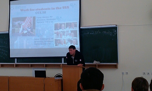 Ребятам была представлена презентация популярной студенческой программы «Work and travel USA», благодаря которой каждый год более 20 000 студентов России уезжают на заработки в разные штаты США.