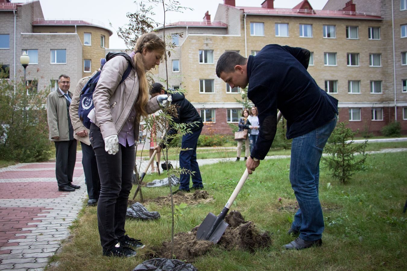 2 сентября ректор Югорского государственного университета Татьяна Карминская, проректоры вуза, директора институтов и студенты-первокурсники, набравшие наибольшее количество баллов по ЕГЭ высадили шесть рябин возле первого учебного корпуса.
