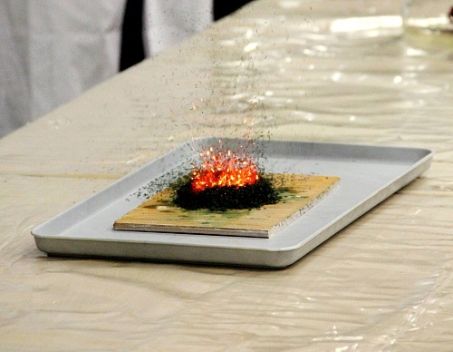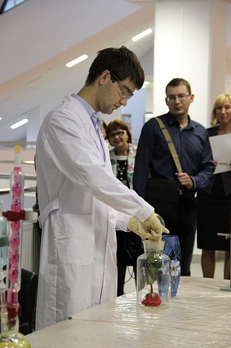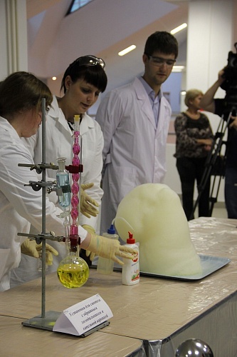 В завершении экскурсии и осмотра всех представленных на выставке экспонатов гости музея стали свидетелями удивительных превращений. На шоу занимательных химических опытов, организованном старшекурсниками направления «Фундаментальная и прикладная химия», свинец стал золотом, красная роза разноцветной, ожил вулкан, а капля перекиси водорода вызвала пенную бурю.