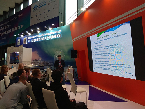 В экспозиции были представлены 24 стенда крупнейших арктических регионов, крупнейшие НИИ страны, Минприроды России, Минобрнауки России и Росмолодежь.