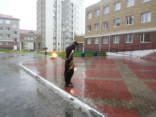 Дождь перевел OpenAir в другой формат.Несколько байков мотосообщества «МОТОСОЮЗ 86» под руководством Олега Визгалова выстроились в ряд во внутреннем дворе ЮГУ. Студент ЮГУ и по совместительству лидер фаер-шоу «Fire strengers» Виктор Кривуляк заявляет о полной готовности группы из Ханты-Мансийска начать огненное представление. Закончена проверка аппаратуры и все группы-участницы фестиваля в сборе.