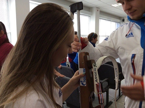 Сегодня СМИшки встречаются с биатлонистами в Центре зимних видов спорта. «Спортсмены учат нас обращаться с винтовкой и рассказывают о себе, о биатлоне. Несмотря на мороз, они провели тренировку. Мы впервые так запросто общаемся со спортсменами. Спасибо СМИшке, что предоставила нам возможность поучаствовать в такой интересной пресс-конференции», – сообщает Регина Валиева.