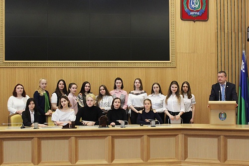 Студенты-журналисты первого курса Югорского госуниверситета побывали на экскурсии в окружной Думе. Она началась с рассказа об истории создания законодательного органа государственной власти Югры, который в следующем году отметит своё 25-летие, осмотра зала заседаний, где принимаются важнейшие решения, влияющие на все аспекты жизнедеятельности региона. Особый интерес у ребят вызвала возможность посидеть в депутатских креслах, сфотографироваться в президиуме, откуда работой Думы руководит ее председатель Борис Хохряков.