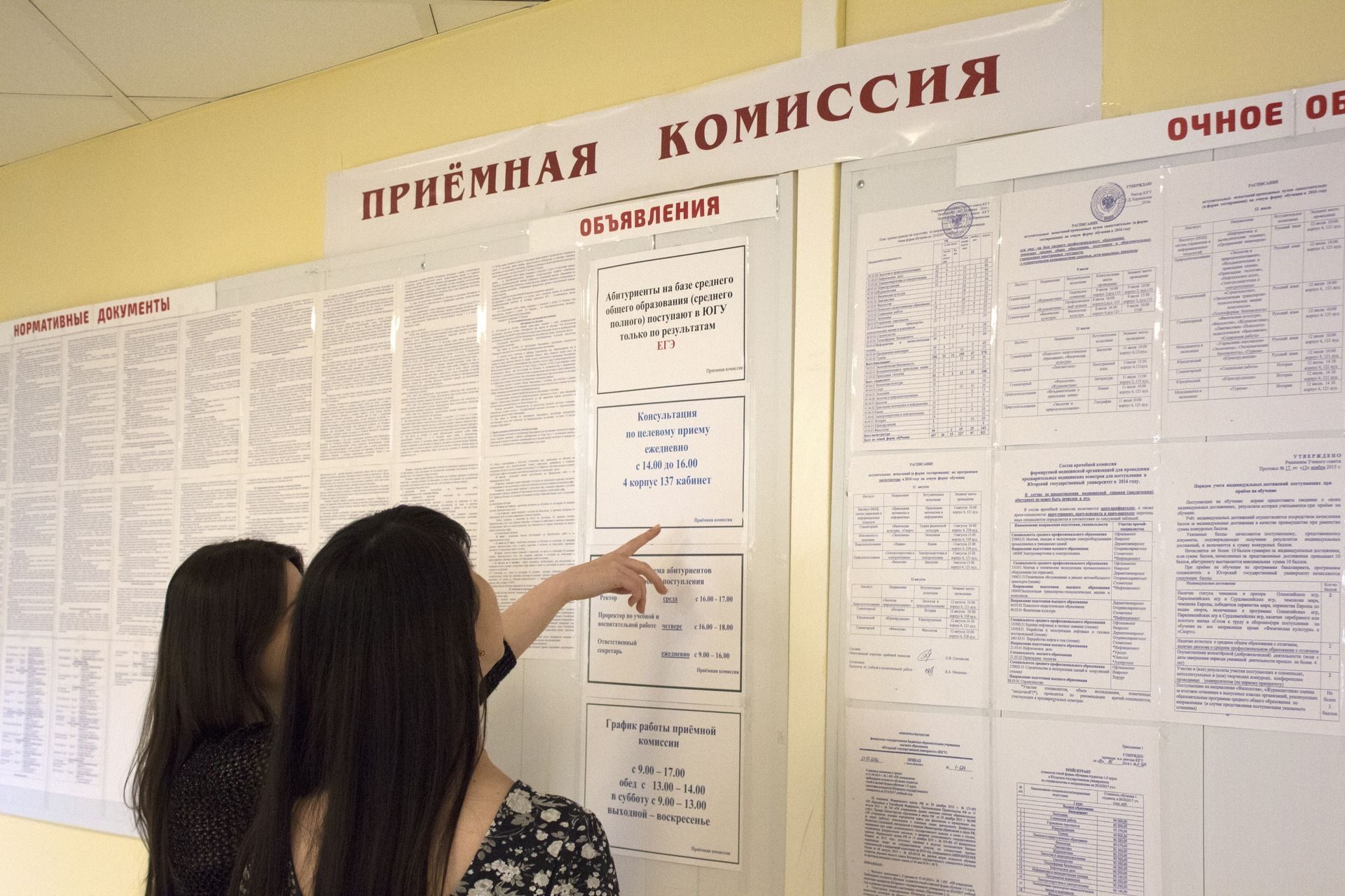 Изменения в Правила приёма были утверждены на Ученом совете университета. Сегодня, 31 мая состоялась приемка «объекта» – ректор Югорского госуниверситета Татьяна Карминская и проректор по учебной и воспитательной работе Владимир Мищенко в торжественной обстановке перерезали ленточку на пороге аудитории Приемной комиссии, где будет осуществляться прием документов.