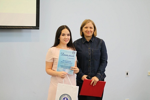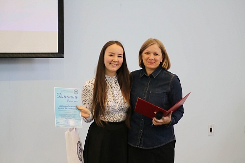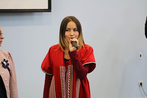 Директор Института народов Севера Татьяна Дятлова наградила Викторию Костылеву благодарственным письмом организаторов международного конкурса «Мисс студенчество Финно-Угрии 2017» за достойное представление Югорского госуниверситета на конкурсе. Девушка стала победительницей в двух номинациях «Приз зрительских симпатий» и «Мисс творчество».